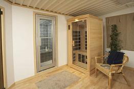 Одноместная инфракрасная сауна из красного канадского кедра украсит любой дом. Данная ик-сауна компактна и очень комфортабельна, а классический дизайн дополнит любой интерьер.