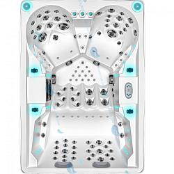 В чаше предусмотрено 3 сидячих места и 2 комфортабельных лежака. Для сидячих мест имеется общая зона для массажа ступней и ног. У лежаков и одного сидячего места предусмотрены специальные мягкие накладки в области шеи. Они позволяют полностью расслабиться во время гидромассажных процедур. Расположение форсунок для каждого места в гидромассажном СПА-бассейне Джой Спа JY 8018 уникально. Благодаря чему они могут эффективно воздействовать на разные зоны спины, ягодиц и ног.