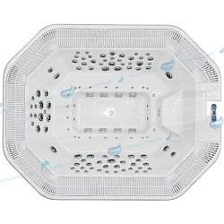 Для каждого места массажные форсунки установлены в индивидуальном порядке, благодаря чему осуществляется воздействие на разные проблемные зоны шеи, спины, икр ног. В конструкции бассейна предусмотрено 33 водных форсунки, их дополняет 10 воздушных форсунок. Силу потока воды каждый пользователь может регулировать для своего места индивидуально.
